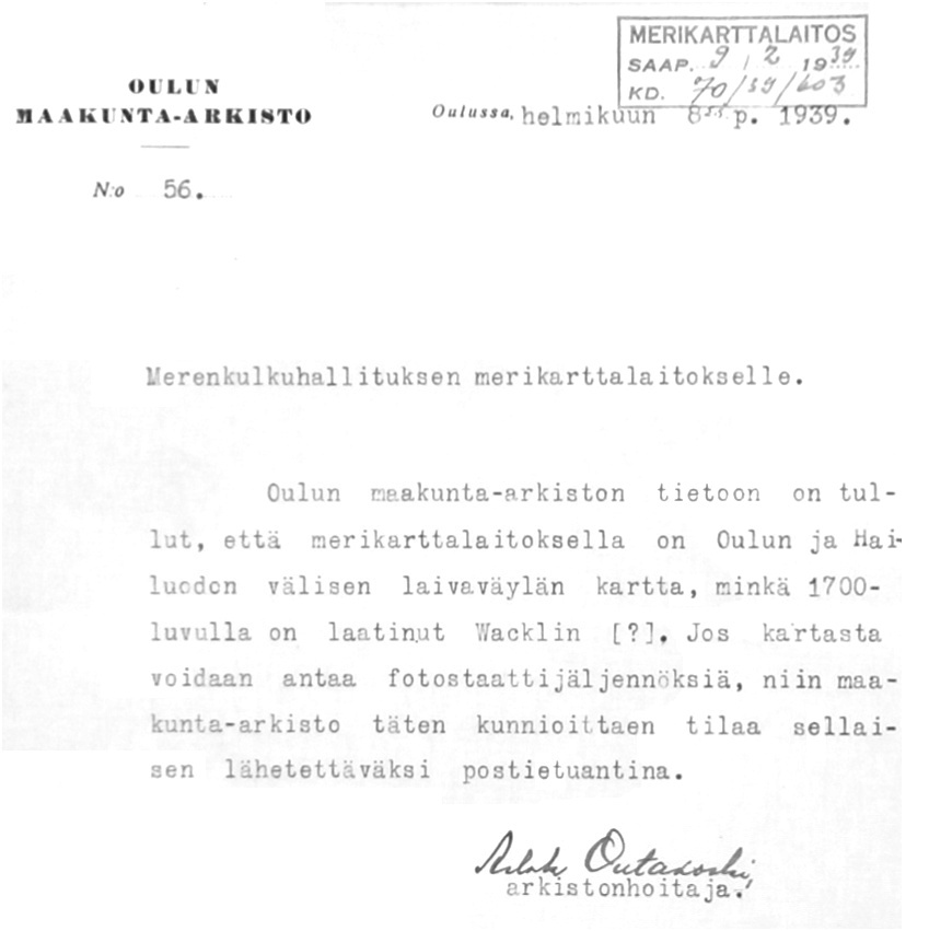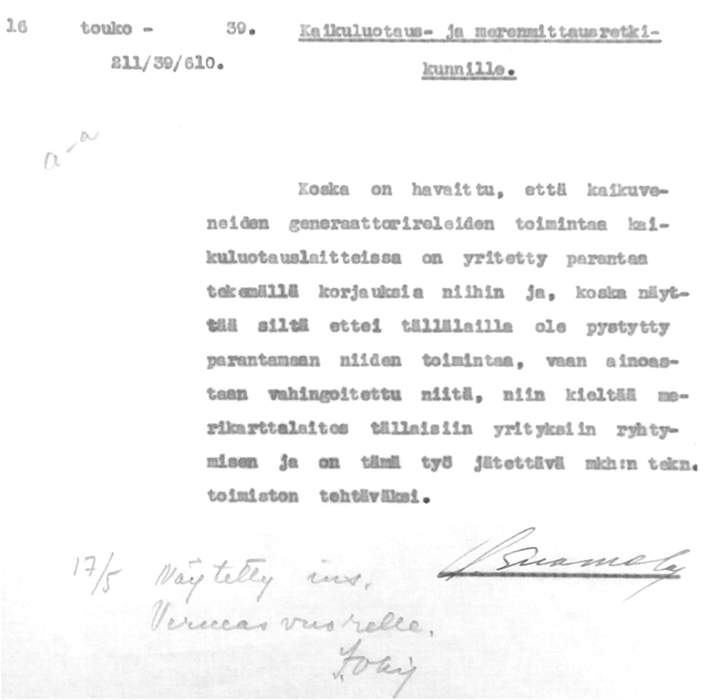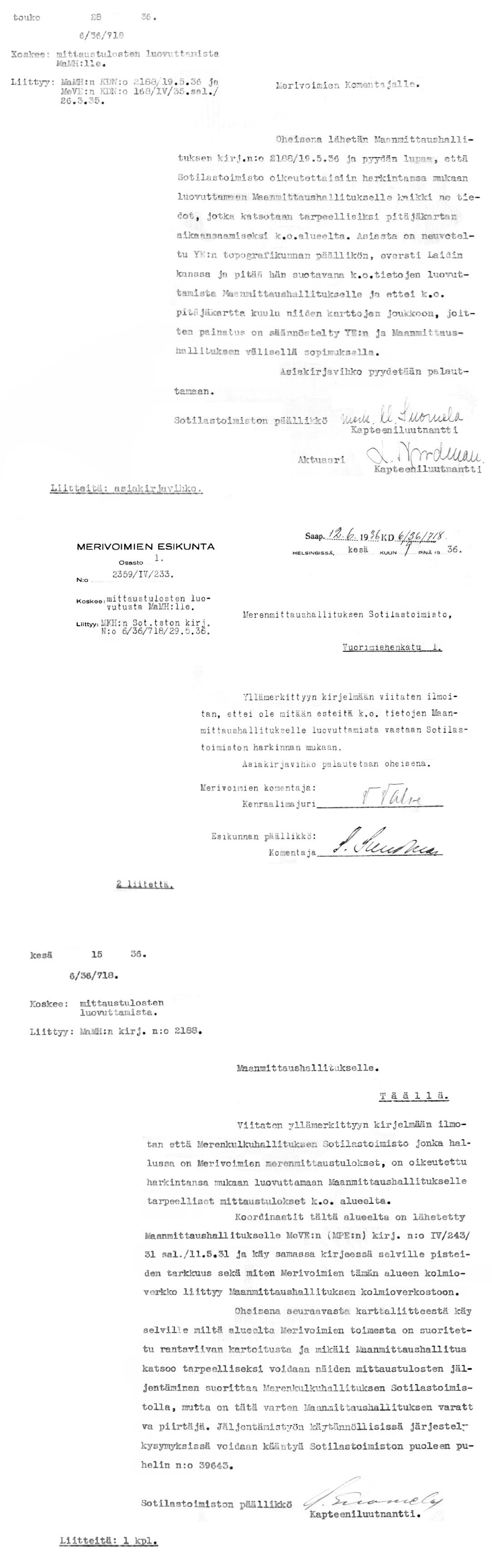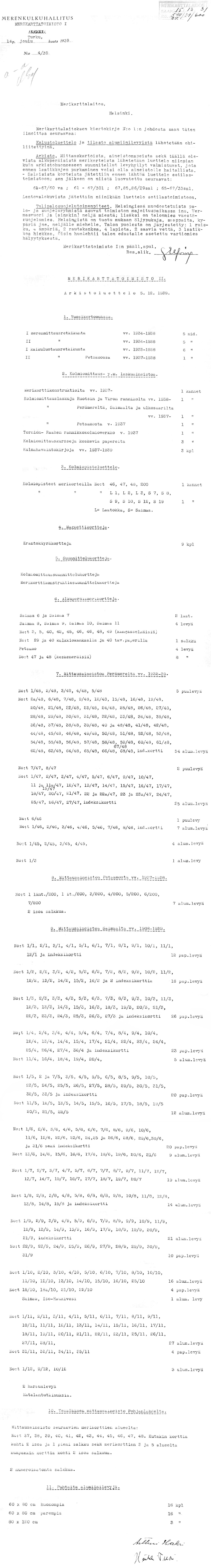 Merikarttalaitoksen kirjeenvaihtoa 1931-1939