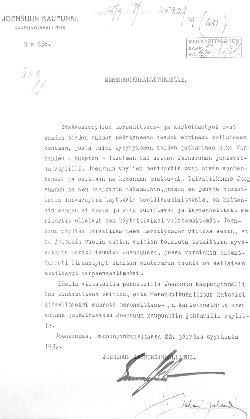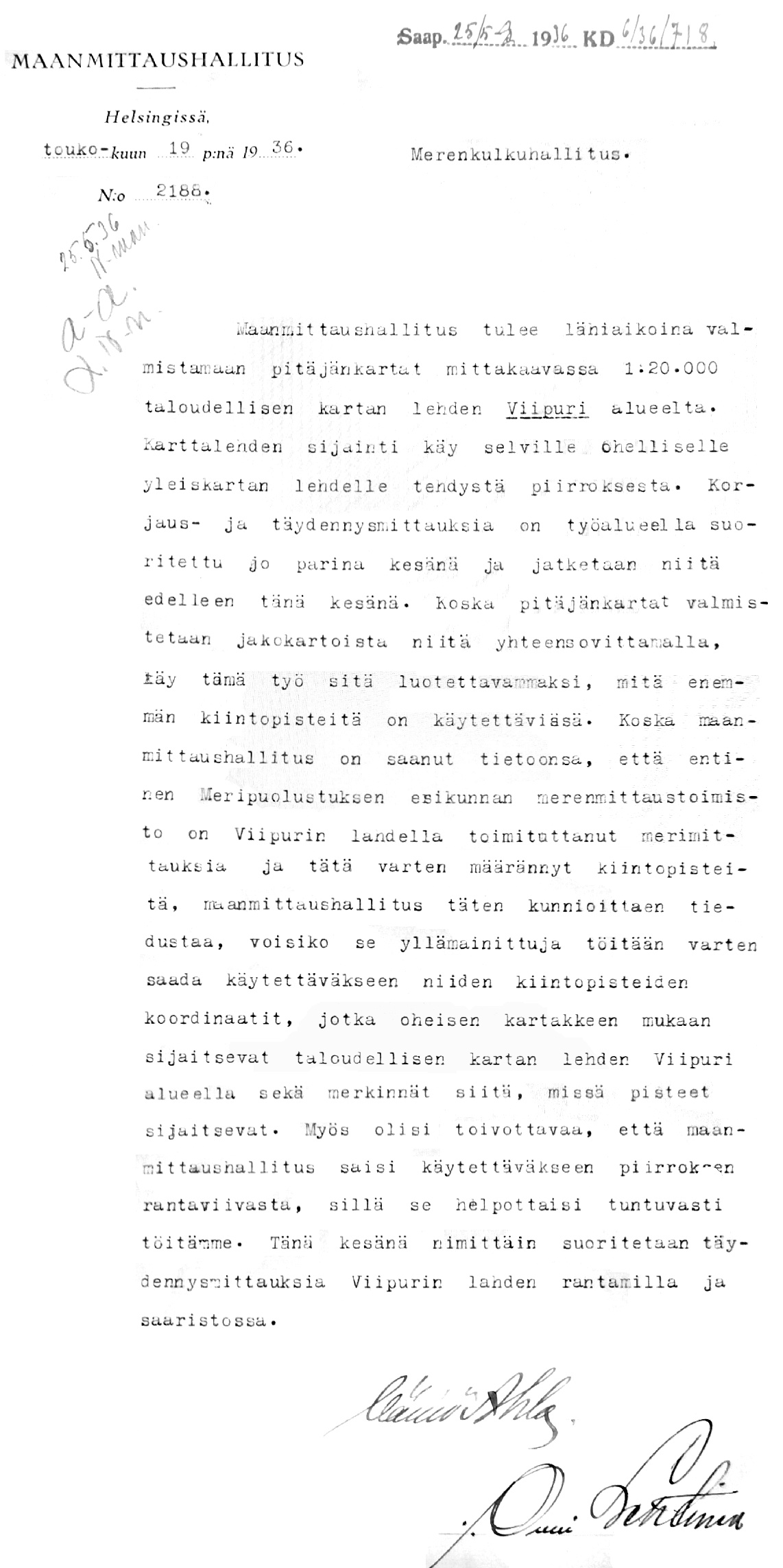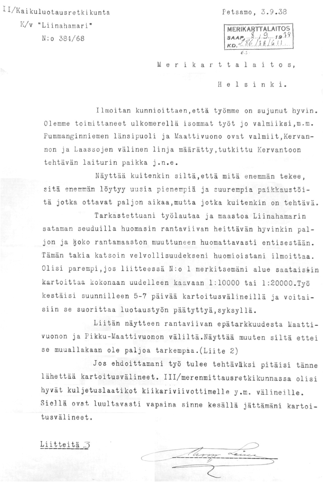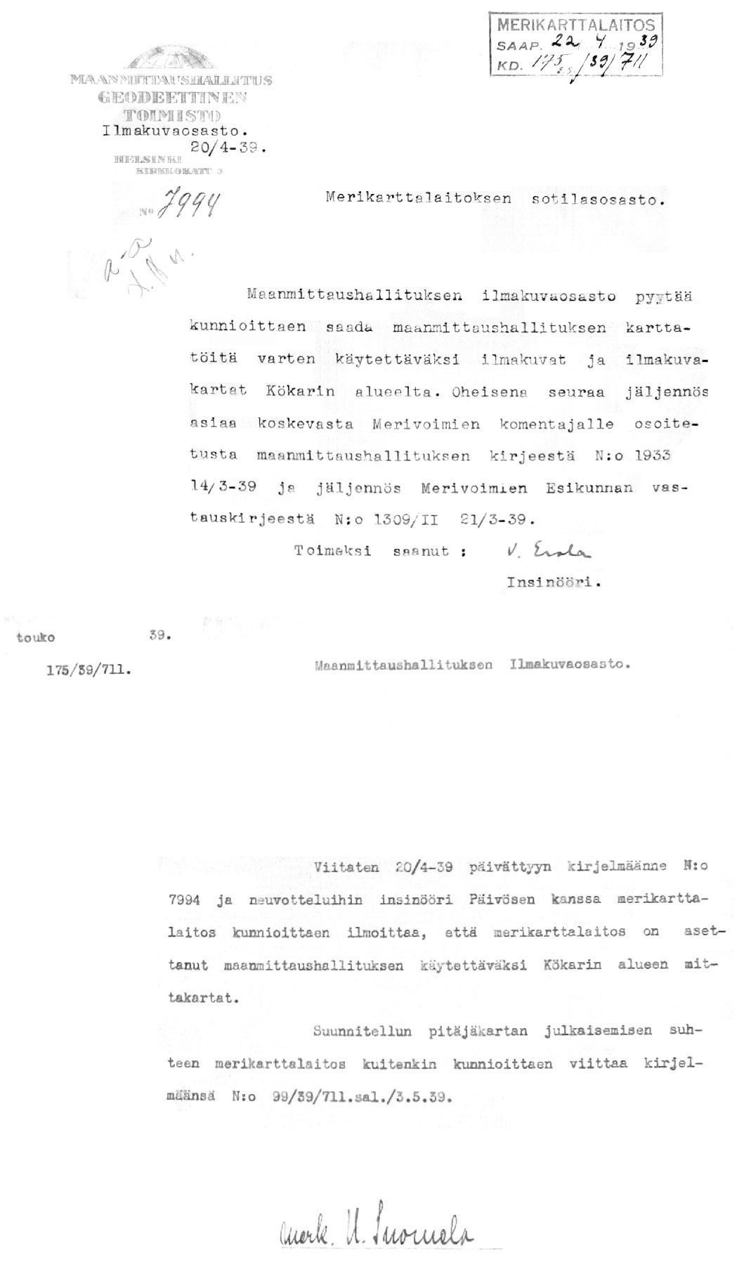 Merikarttalaitoksen kirjeenvaihtoa 1931-1939