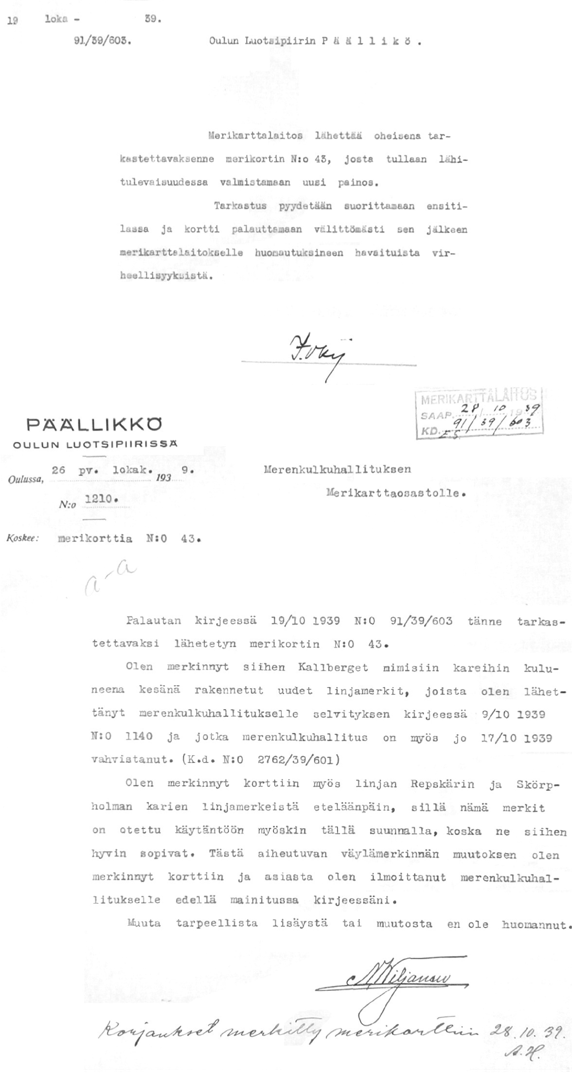 104: 19.-26.10.1939 (Merikortin n:o 43 tarkistus)