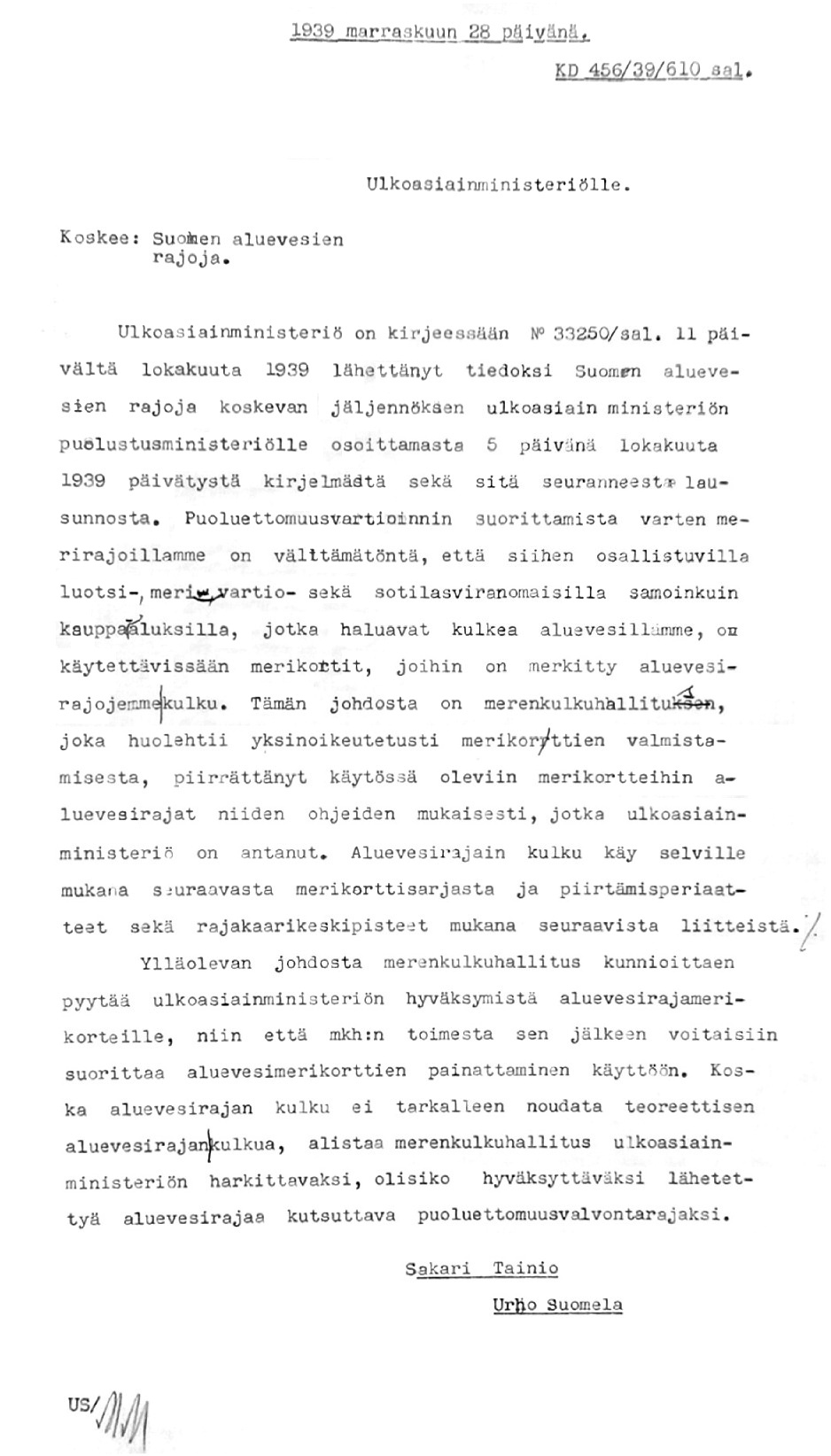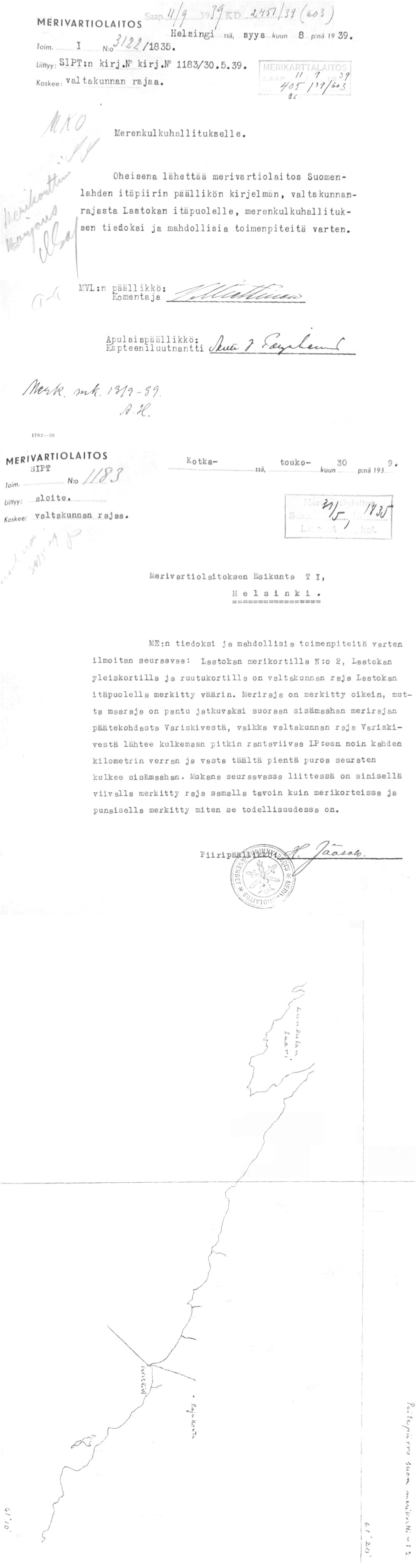 106: 28.11.1939 (Aluevesirajan merkintä merikorteille)