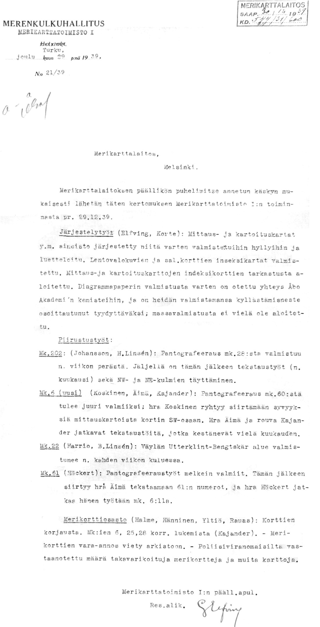 110: 29.12.1939 (MKL:n toimintakertomus)