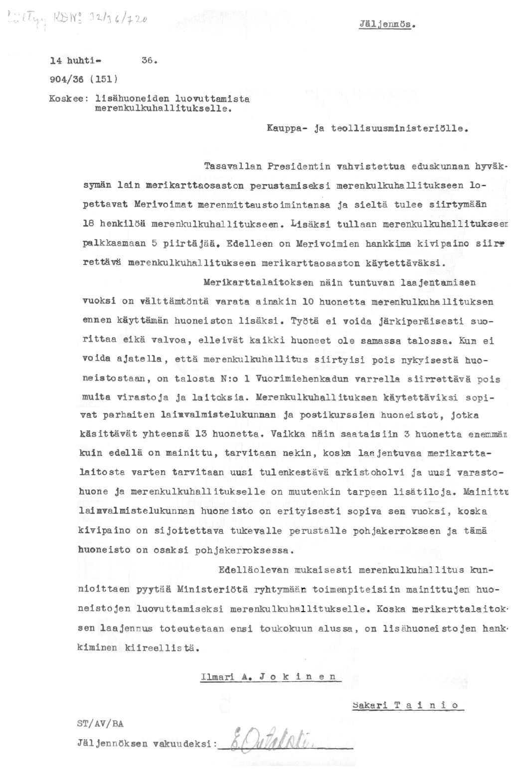 15: 13.8.1936 (MKL:n toimitilat)