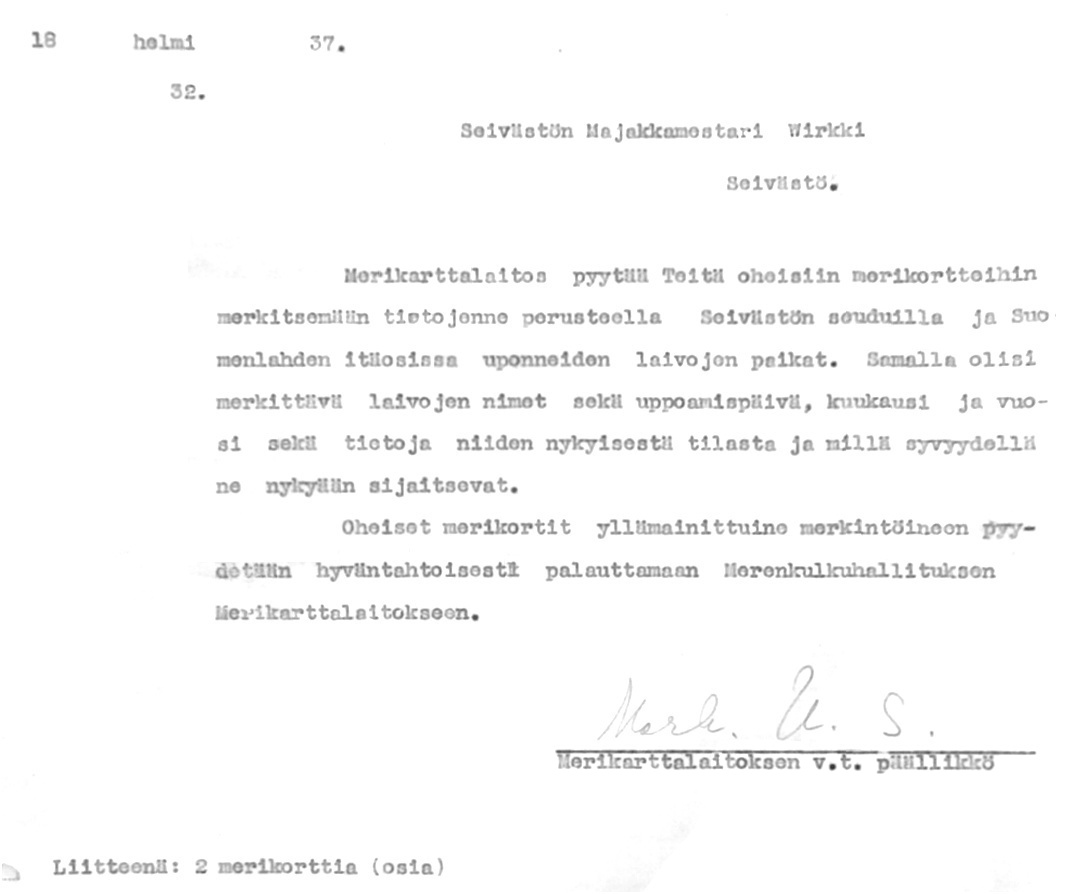 28: 18.2.1937 (Hylkyjen merkintä merikorteille)
