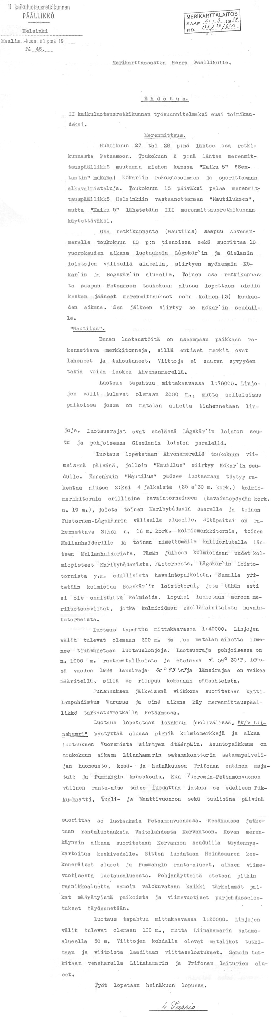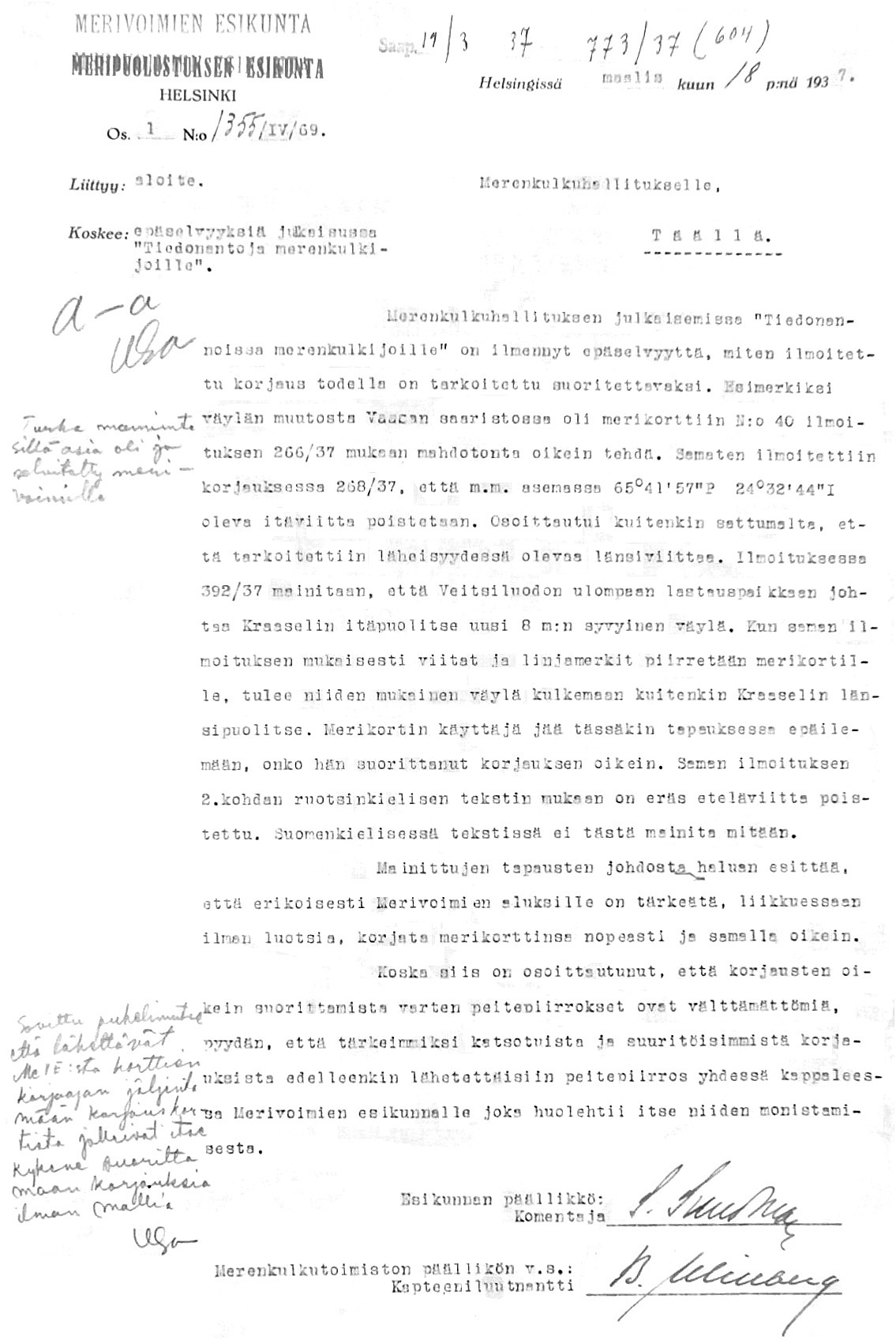 31: 29.3.1937 (Merivoimien ja Merikarttalaitoksen yhteistyöstä)