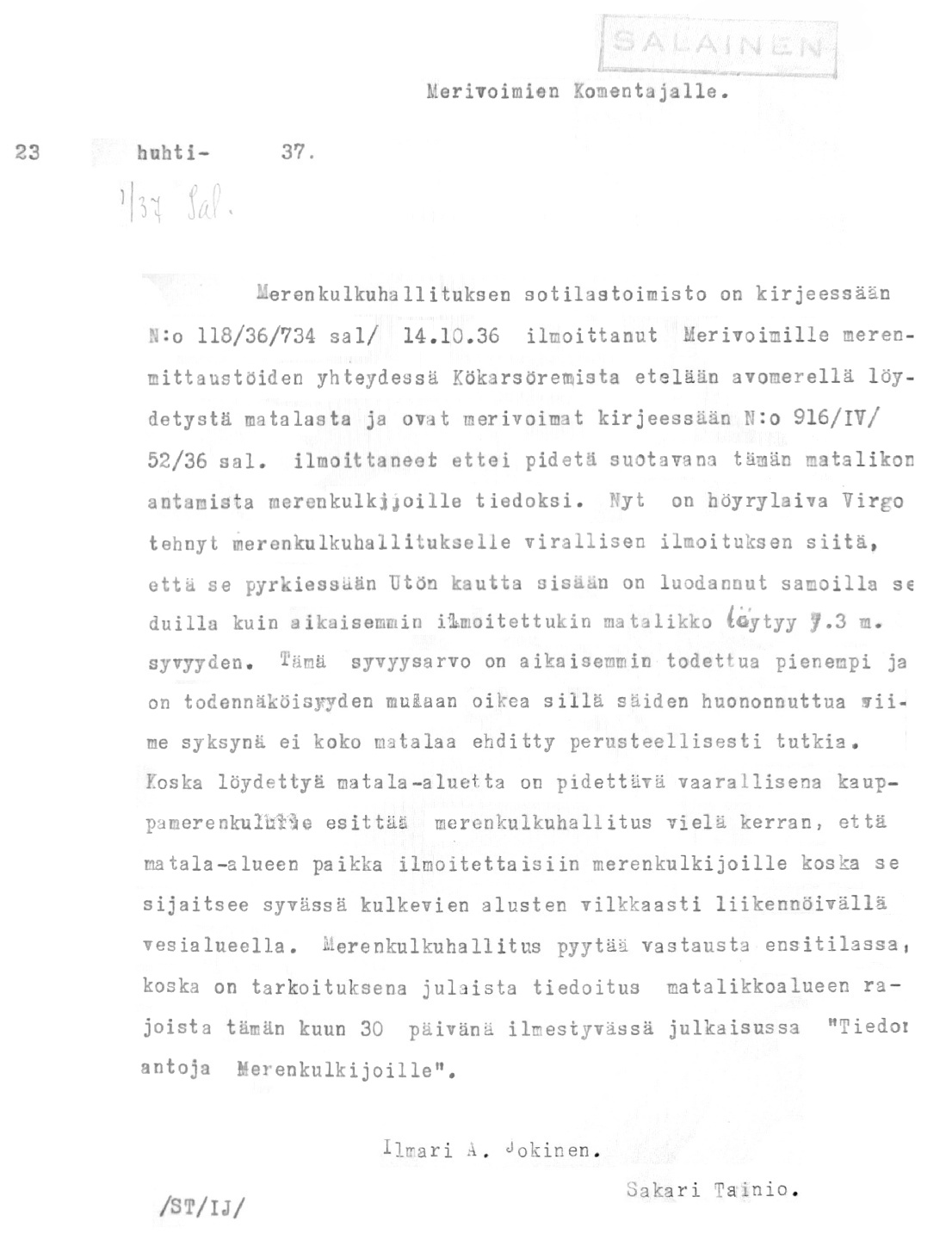33: 23.4.1937 (Löydetty matalikko)