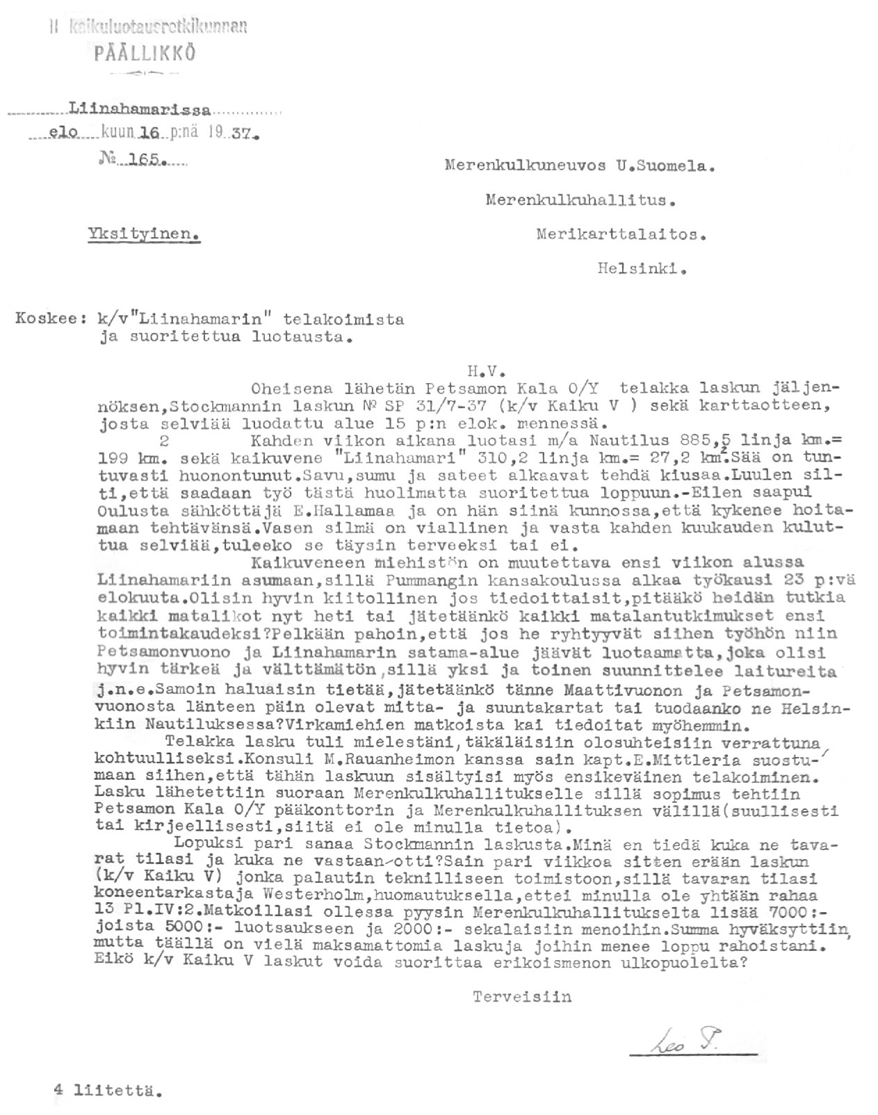 32: 19.4.1937 (Kartoitustyöt Petsamon rannikolla)