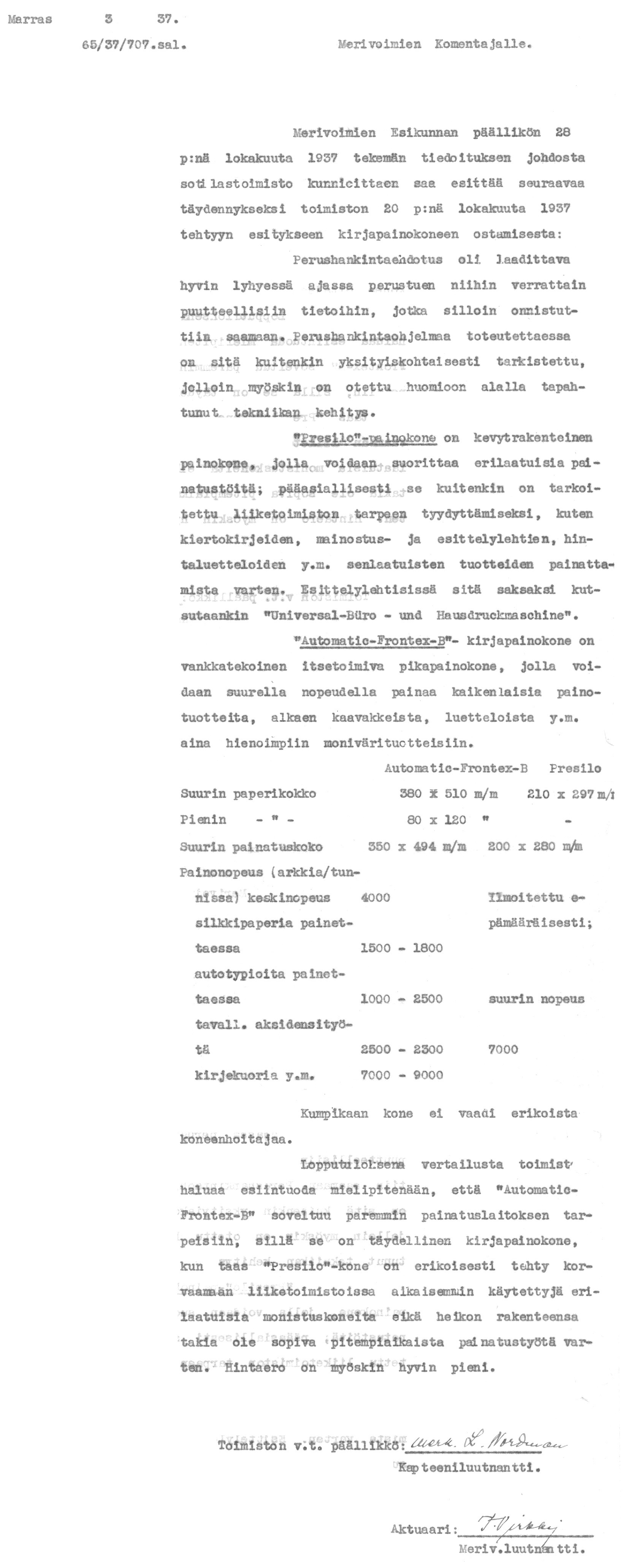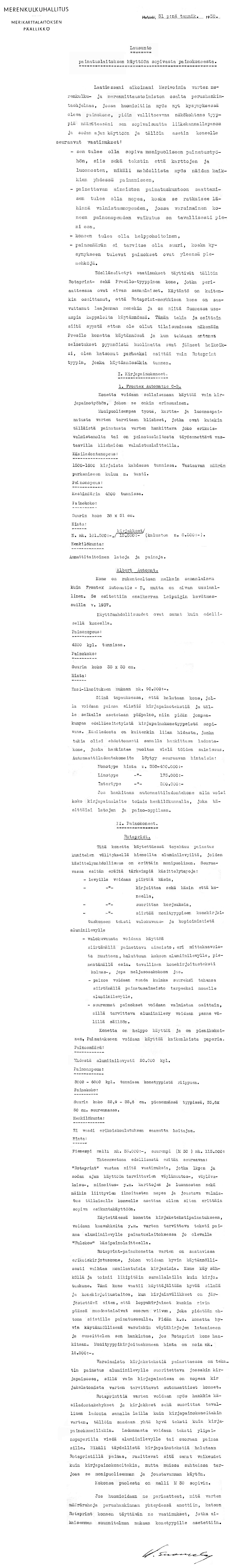 37: 3.11.1937 (Painokoneen hankinta)