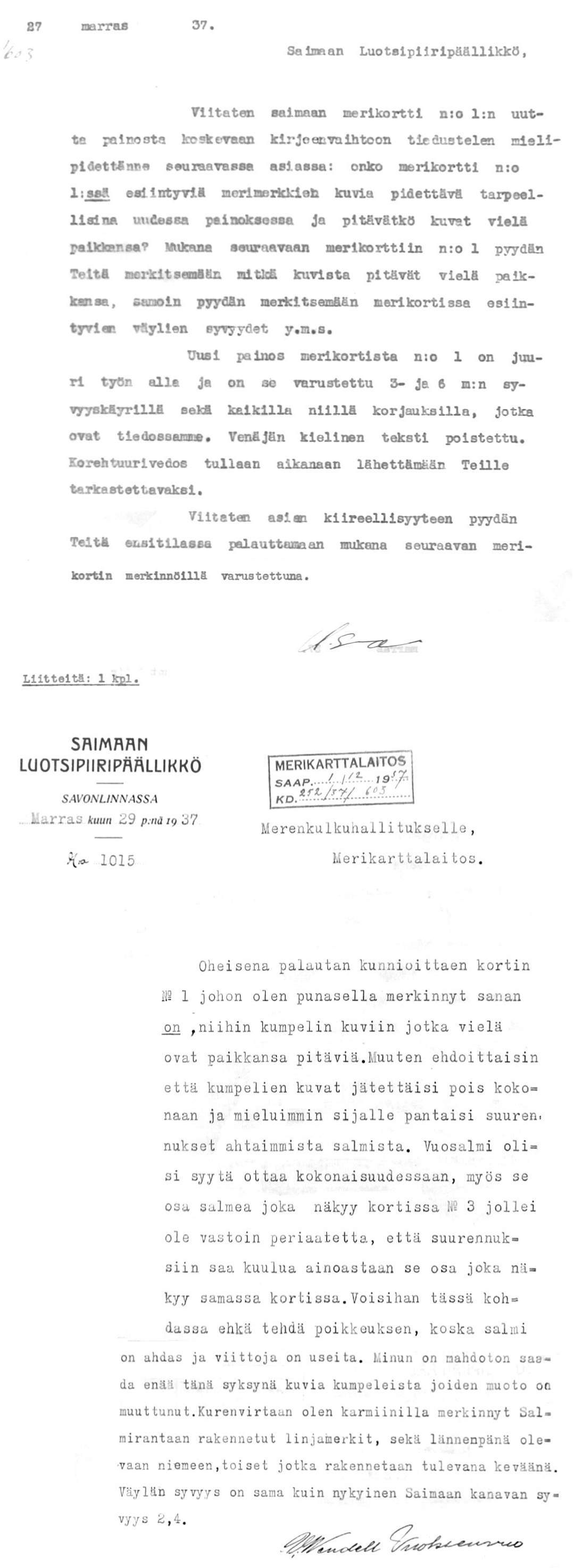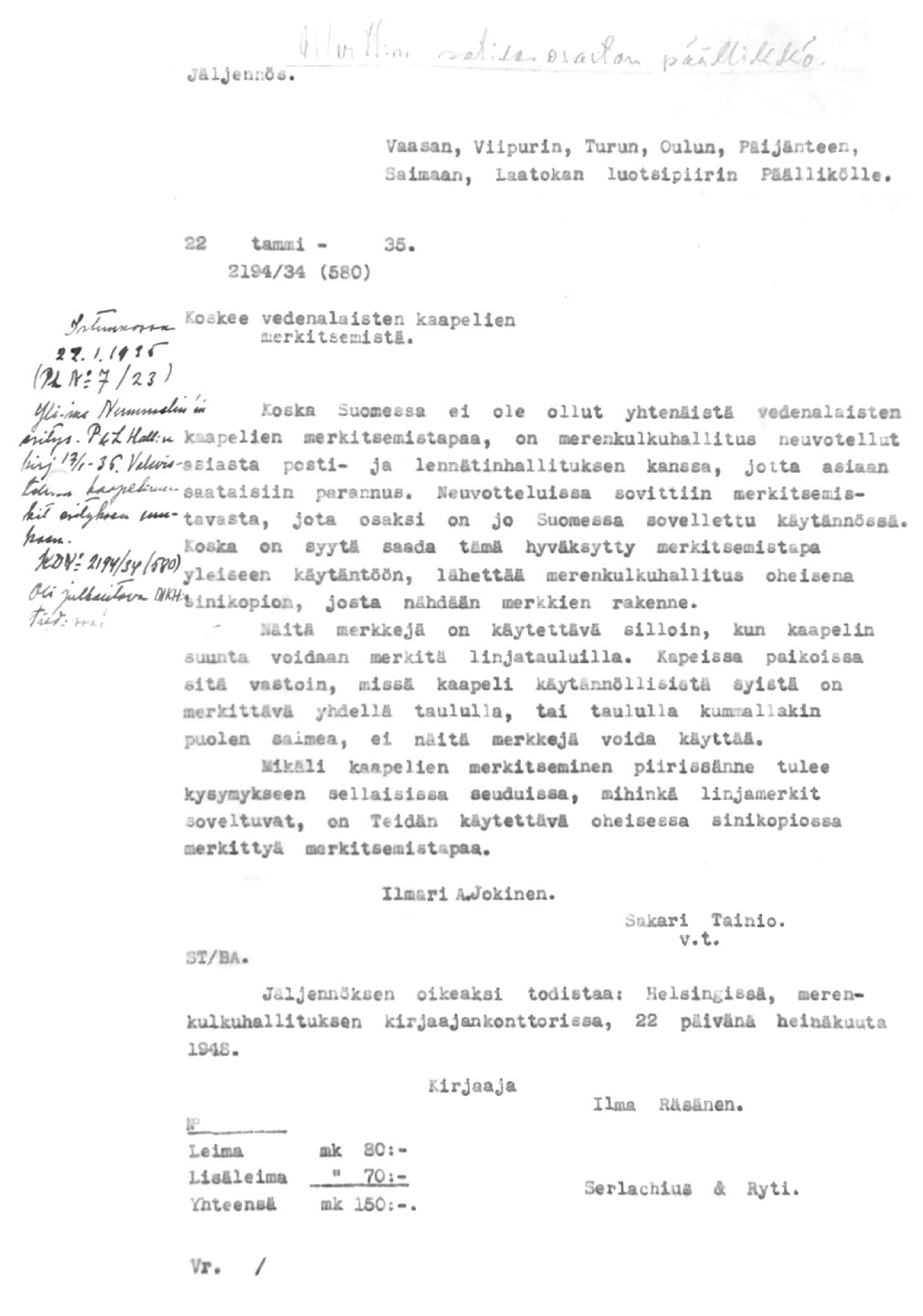 7: 22.1.1935 (Merikaapeleiden merkitseminen merikorteille)