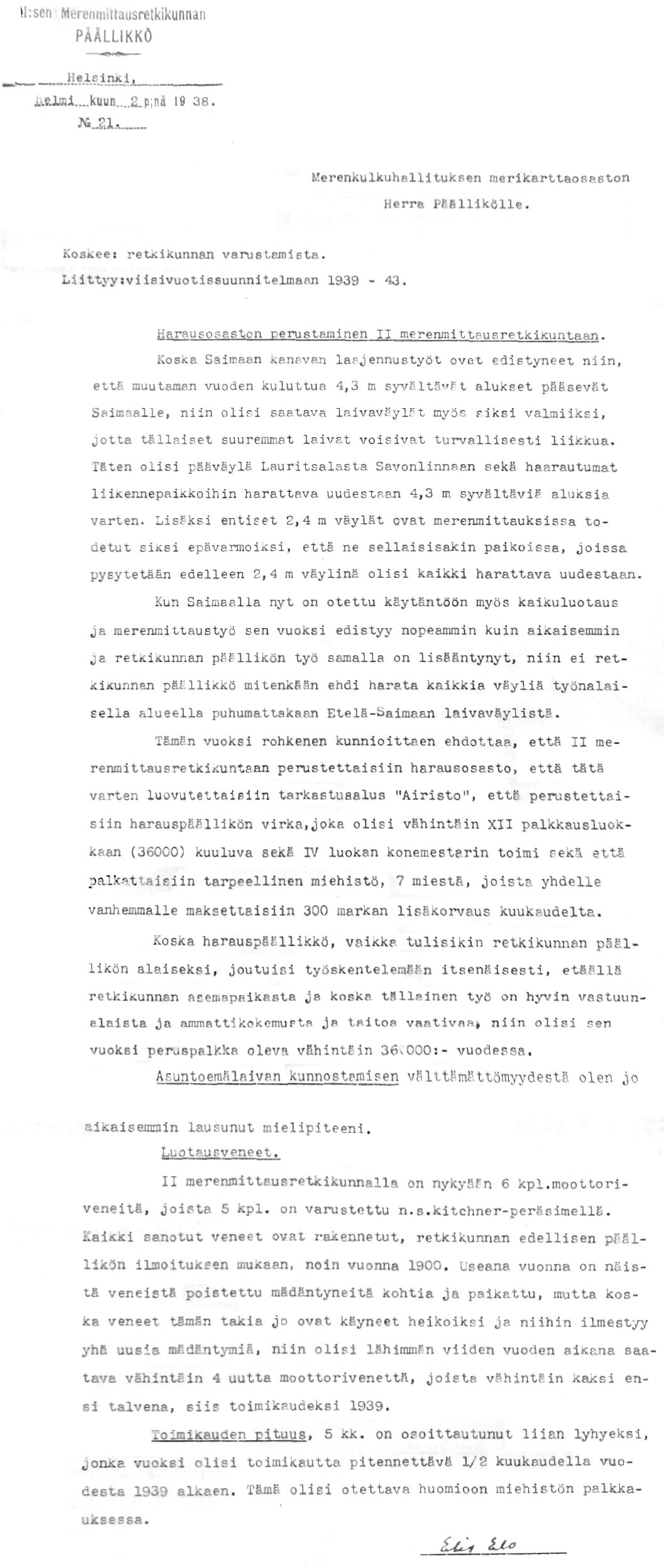 43: 2.2.1938 (Harausosaston perustaminen Saimaalle)