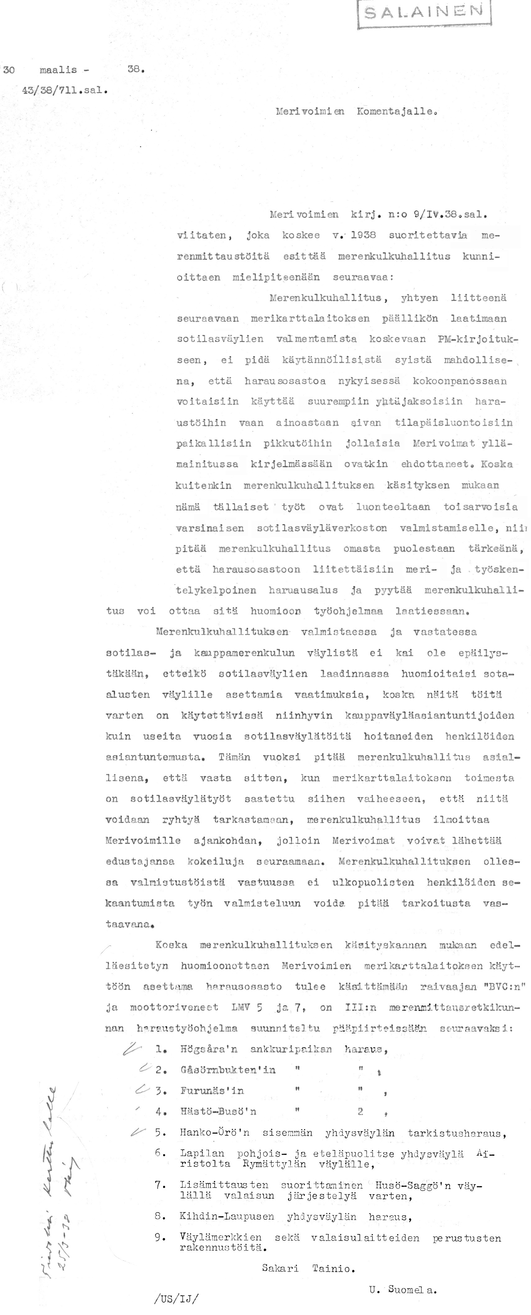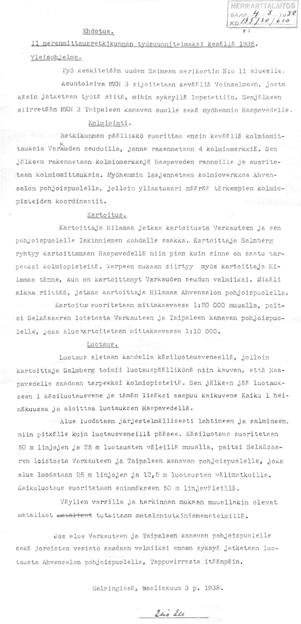 50: 30.3.1938 (Merenmittaustöiden järjestelyt)