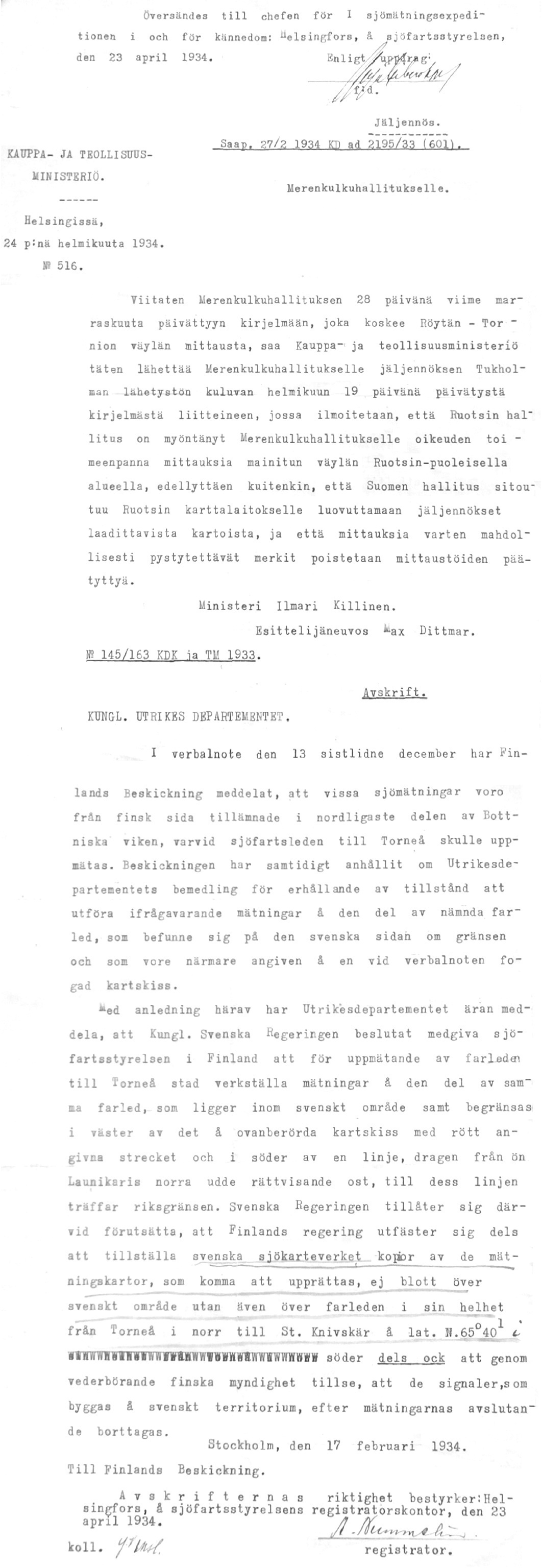 4: 17, 24.2.1934 (Mittaukset Ruotsin vastaisella merirajalla)