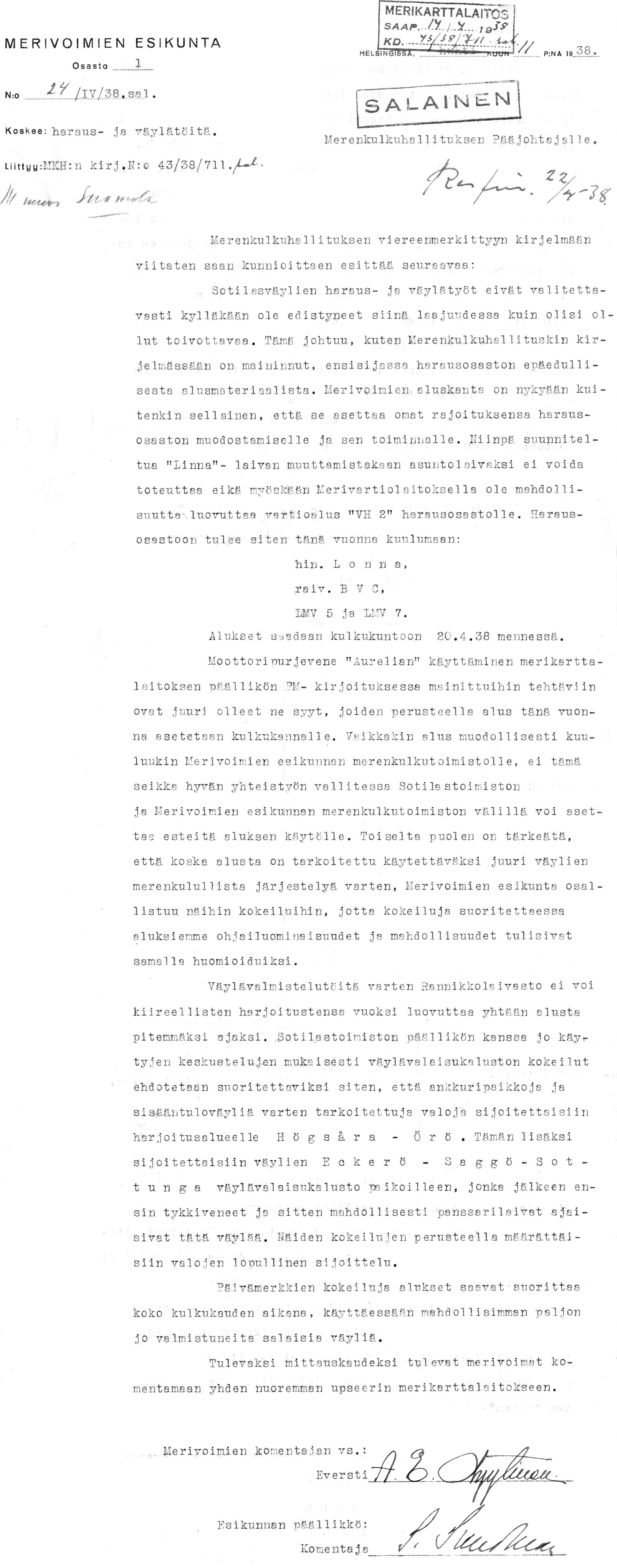 52: 22.4.1938 (Merenmittaustöiden järjestelyt)