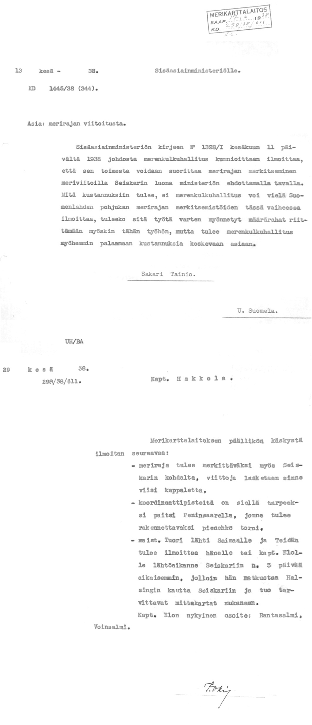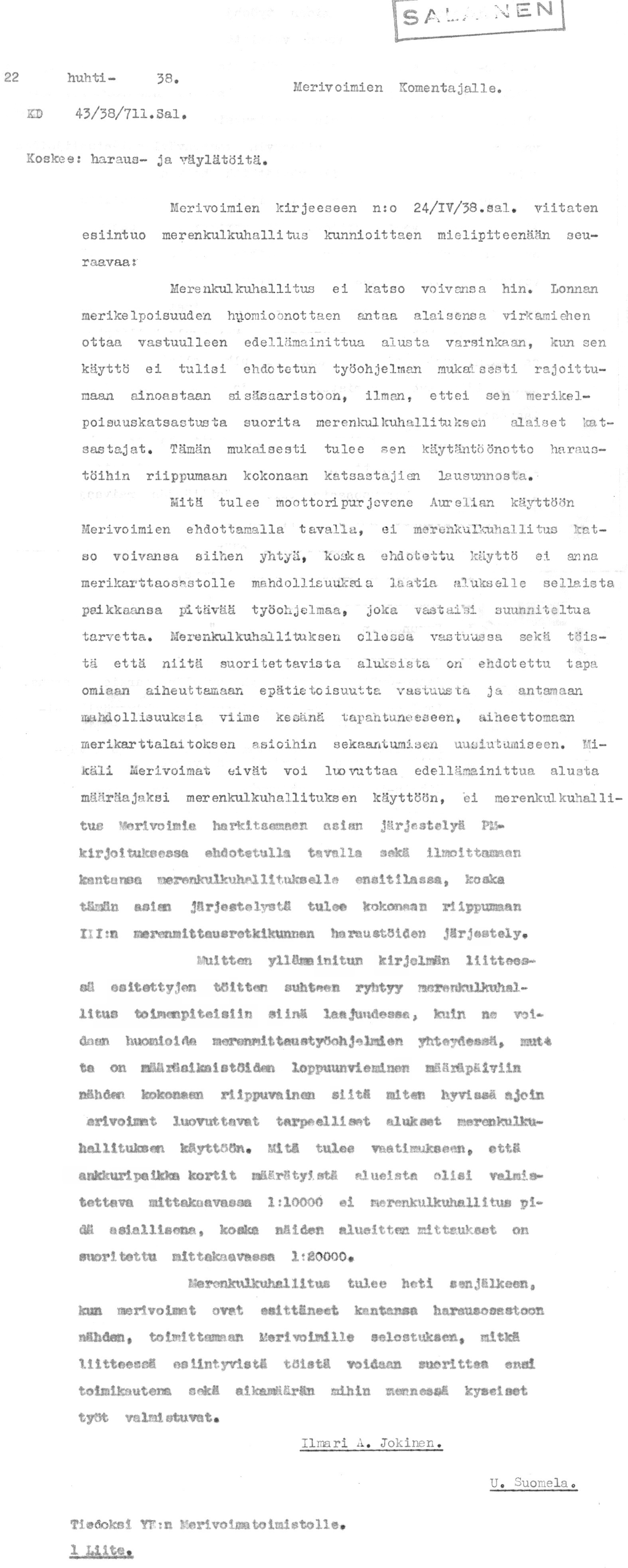39: 11.1.1938 (Merikorttien painatuksesta Jugoslaviassa)