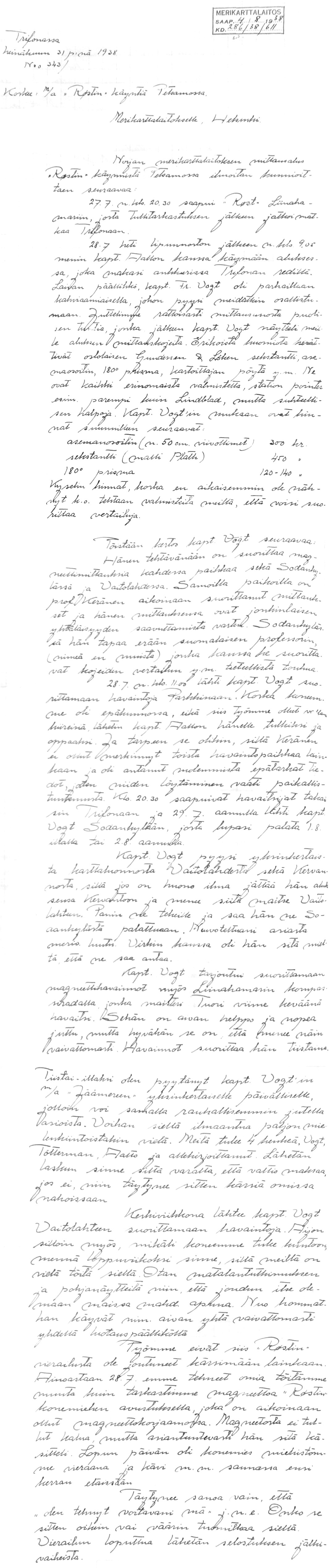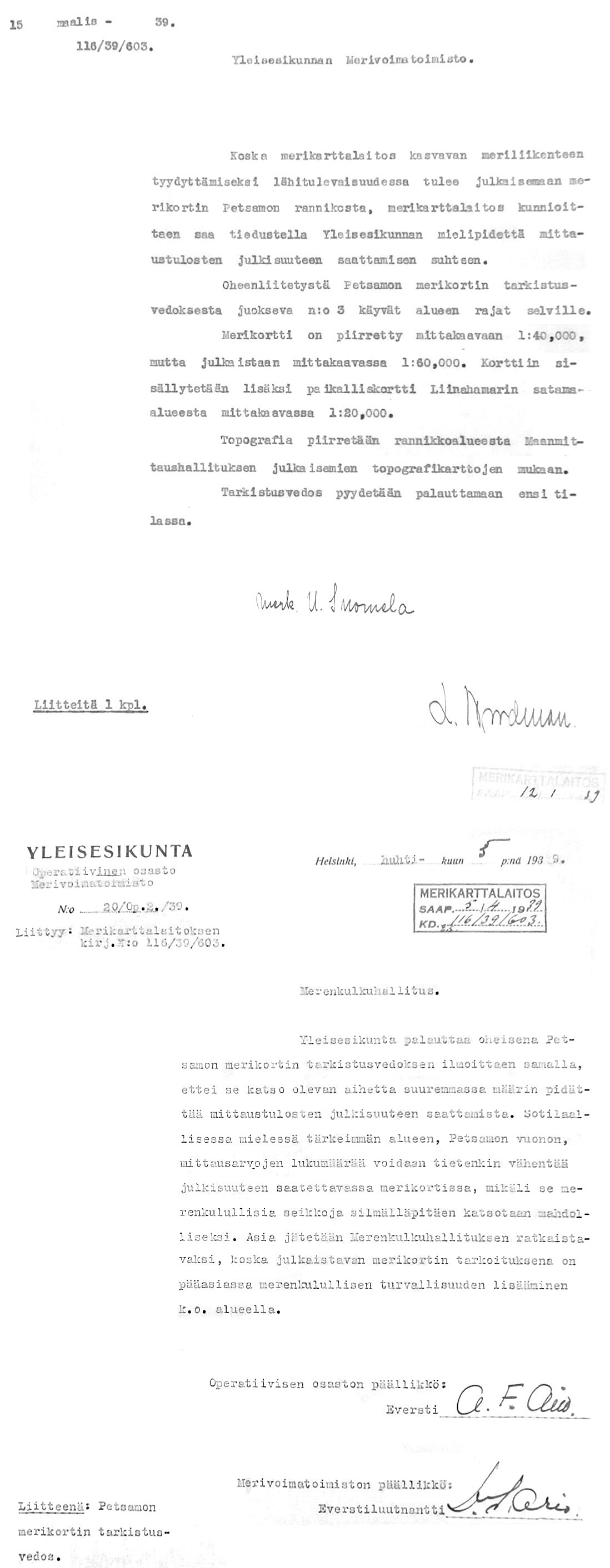 76: 15.3, 5.4.1939 (Petsamon uusi merikortti)