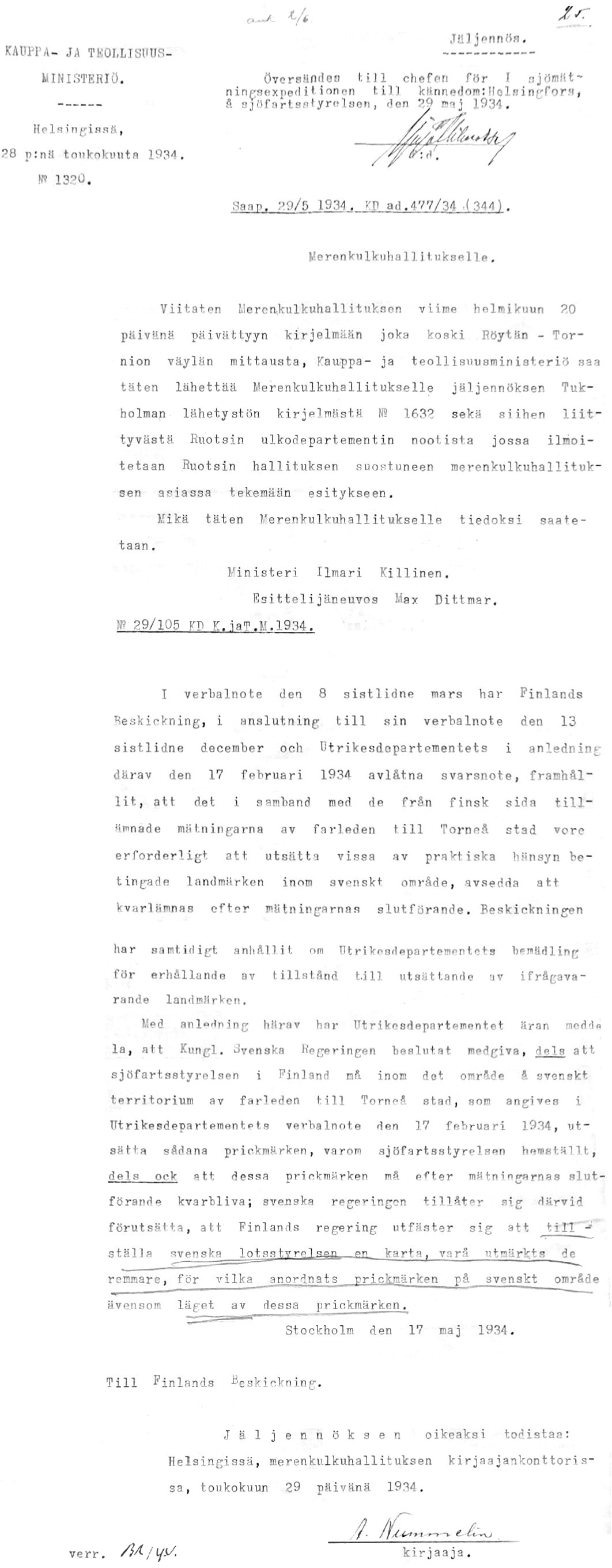 5: 17, 28.5.1934 (Mittaukset Ruotsin vastaisella merirajalla)