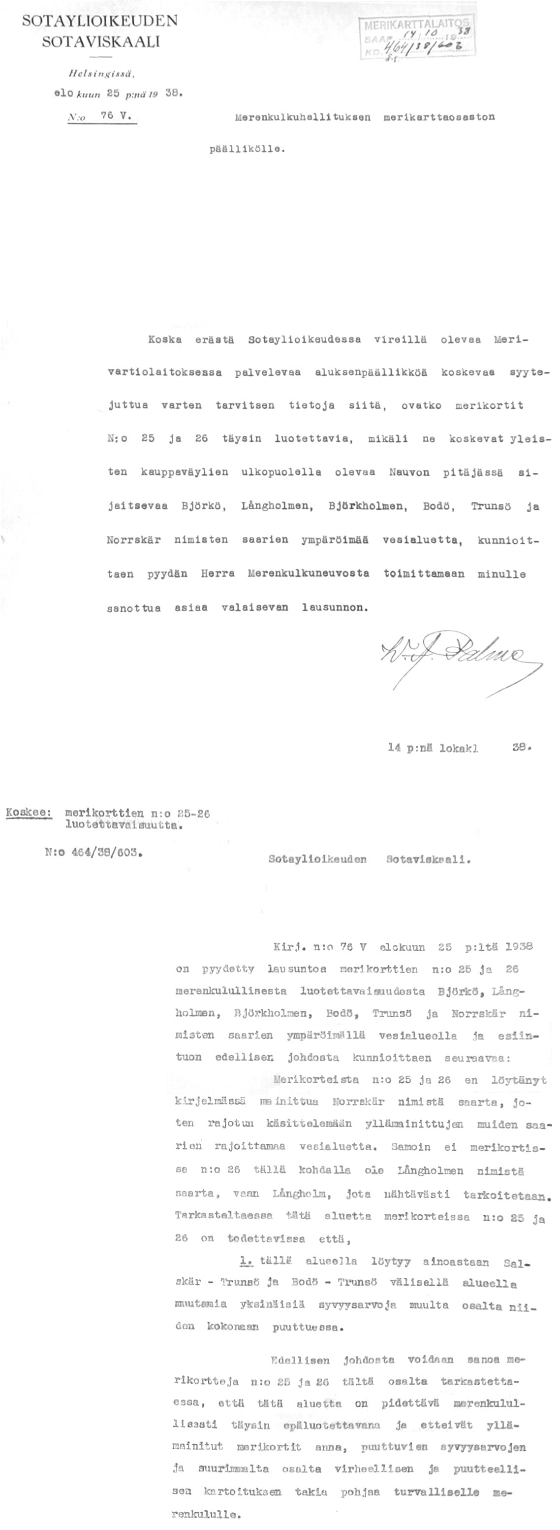 60: 25.8.1938 (Virheet merikorteilla n:o 25 ja 26)