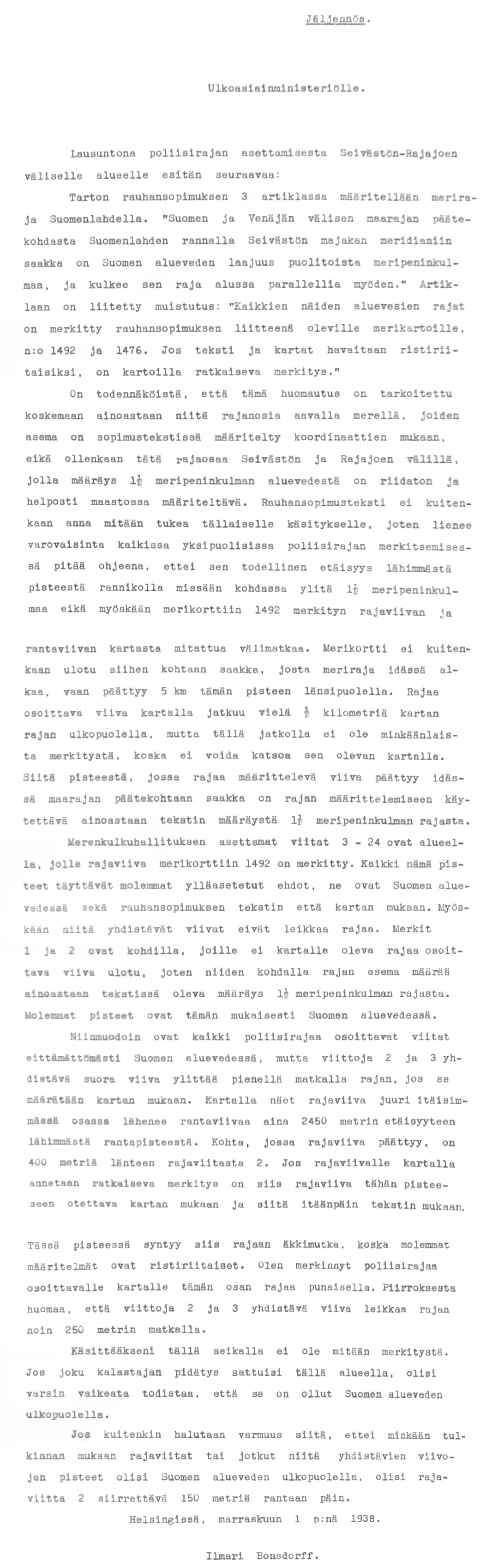 64: 1.11.1938 (Merirajan merkintä itäisellä Suomenlahdella)