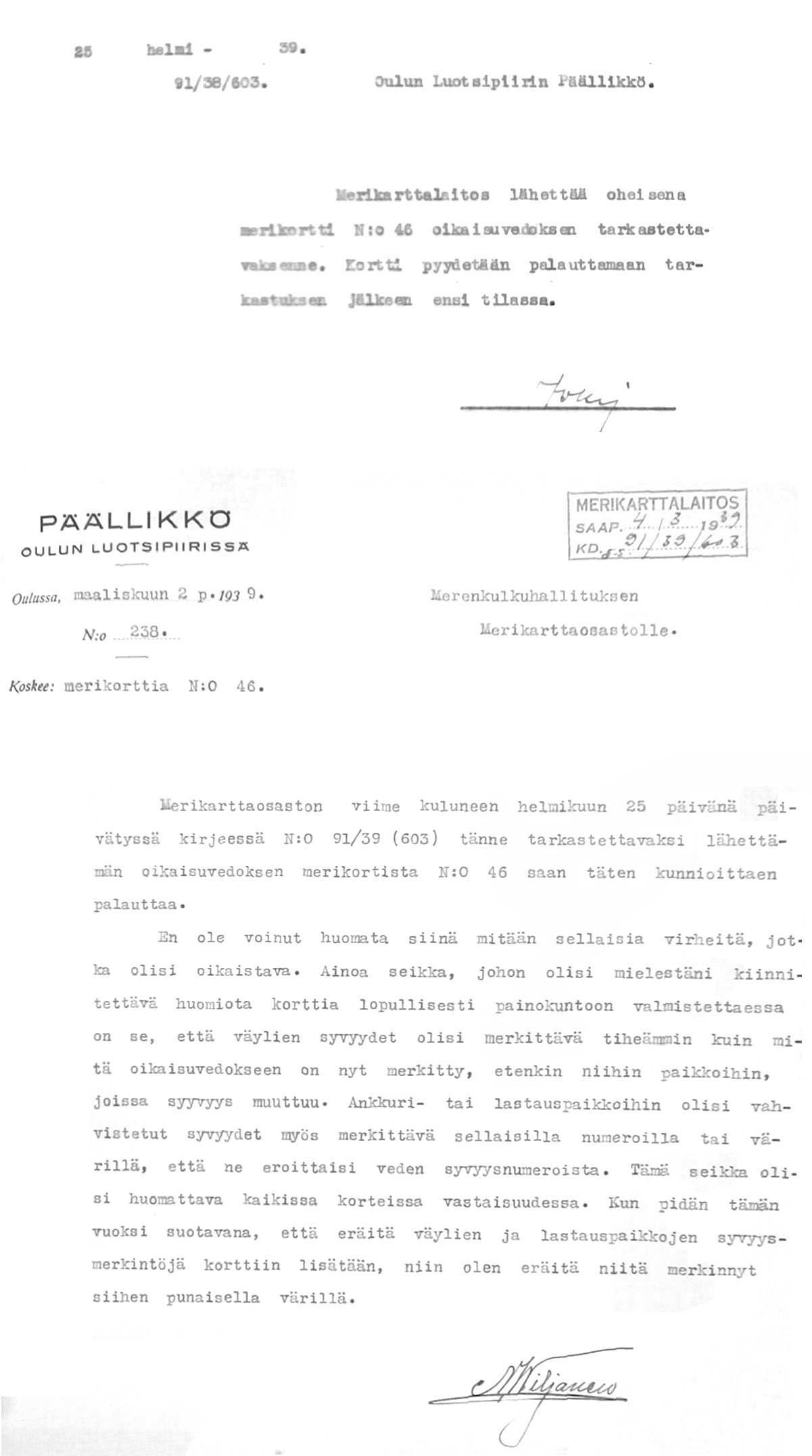 73: 25.2.-2.3.1939 (Merikortin n:o 46 tarkistus)