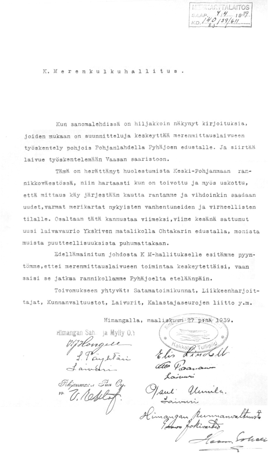 78: 27.3.1939 (Merenmittauksista Pohjanlahdella)