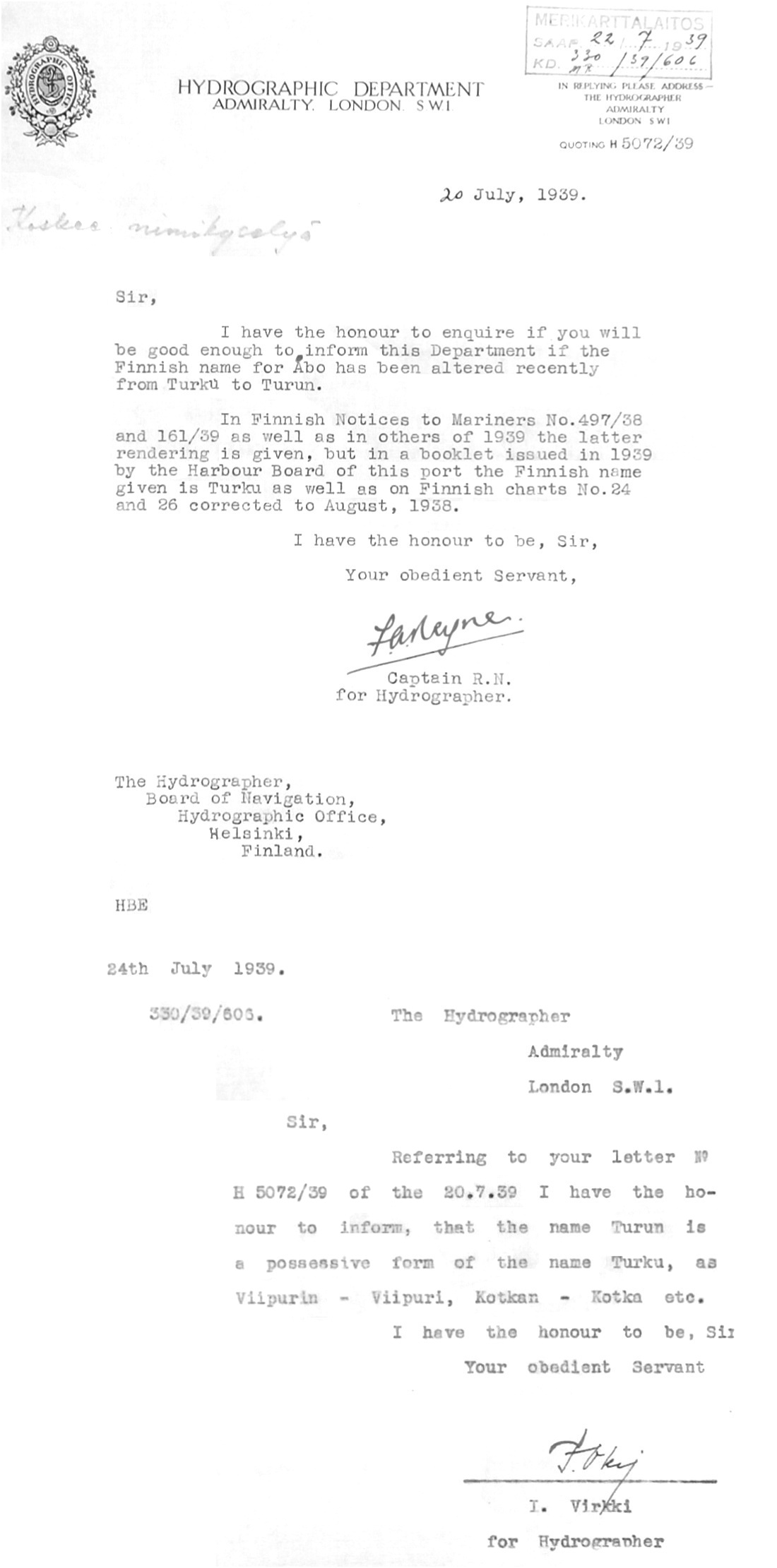 96: 20.-24.7.1939 ("Turku" vai "Turun")